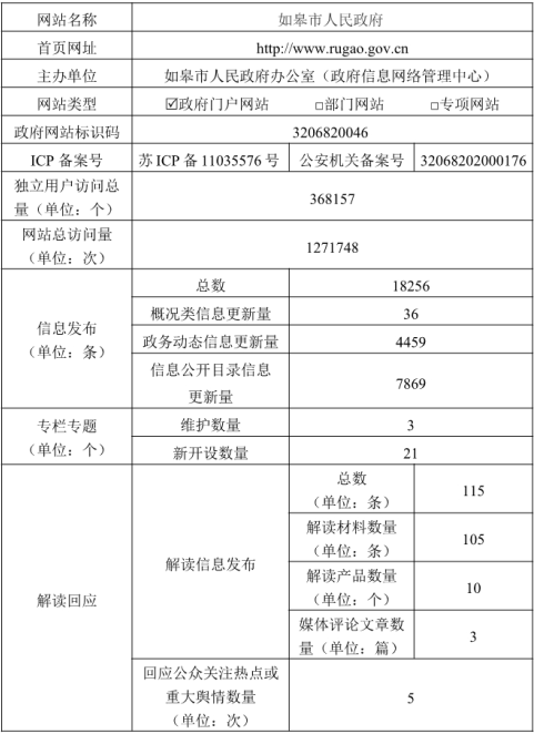 2018年如皋市人民政府網(wǎng)站工作年度報(bào)表